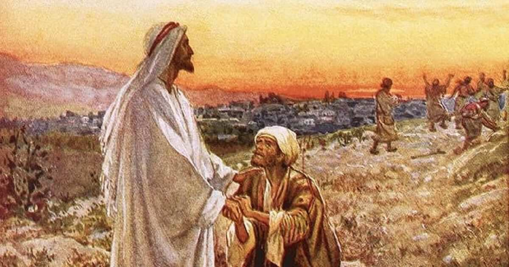 The nine Jewish lepers in the gospel reading do not even remember to thank Jesus in the few minutes after they have left him, and they discover that they are healed. In the painting below, they run off in joy. Only the Samaritan man, despised by the Jews in general, goes back to the Jewish rabbi to thank him.