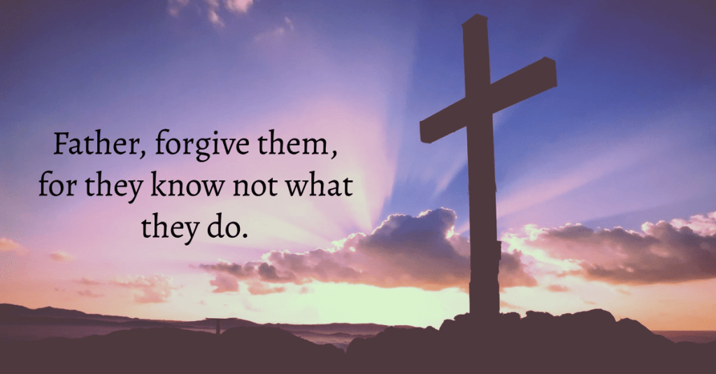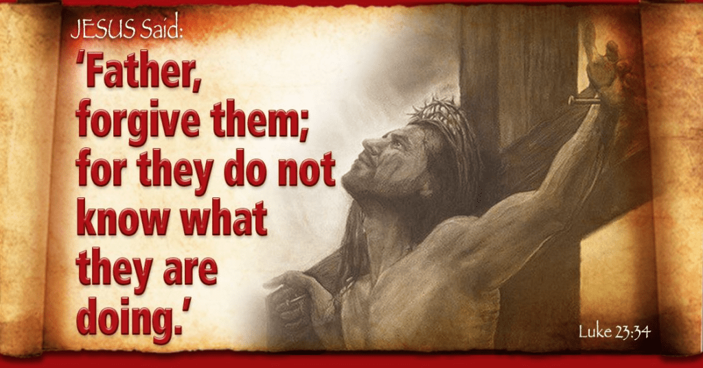 The first of the Seven Last Words is spoken when the soldiers are gambling for J’s clothing. But “they” includes not only those men, but the leadership of the Romans and Jews who have put Jesus on the cross. At the station where the weeping women meet Jesus, he ministered to them, and remarking about his own suffering, he said “If in the green wood, they do such things” he means the leadership. And thus, he encompasses both the soldiers and the leaders in this first word. No matter how much plotting, no matter how evil they were, they really did not appreciate God’s great goodness or his plan of salvation, really they do not know what it is that they are actually doing. Jesus wanted this prayer to be imitated by his disciples – he does not give the forgiveness, but asks the Father to forgive them.